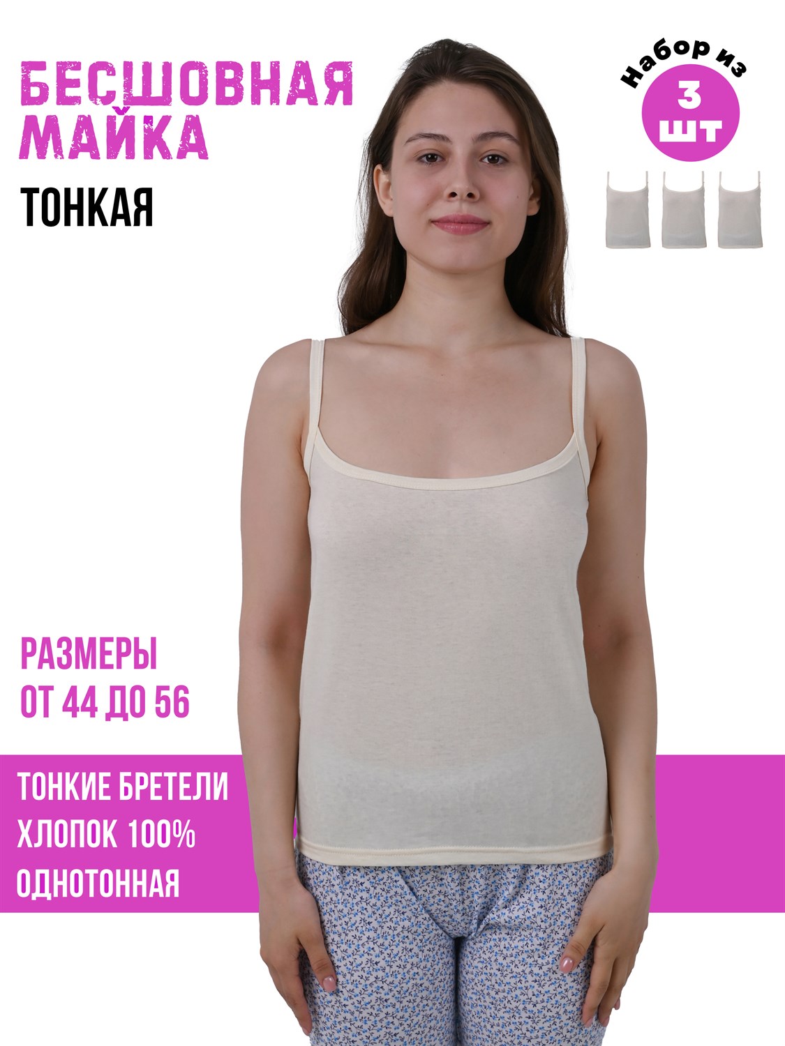 Майка женская бесшовная на тонких бретельках. Классическая базовая модель без рукавов. Бельевая майка легко скрывается под одеждой и подходит для любой фигуры. Отлично садится по фигуре, не широкий и не короткий, правильной длины, удобно заправлять и носить навыпуск. Топ больших размеров подойдет беременным и кормящим мамам. Так же можно использовать как школьную модель под рубашку, как комплект майка с шортами или домашнее нижнее белье, пижаму. Подойдет в качестве подарка любимой маме, девушке, девочке, подруге, сестре, жене, для взрослых, для подростков.