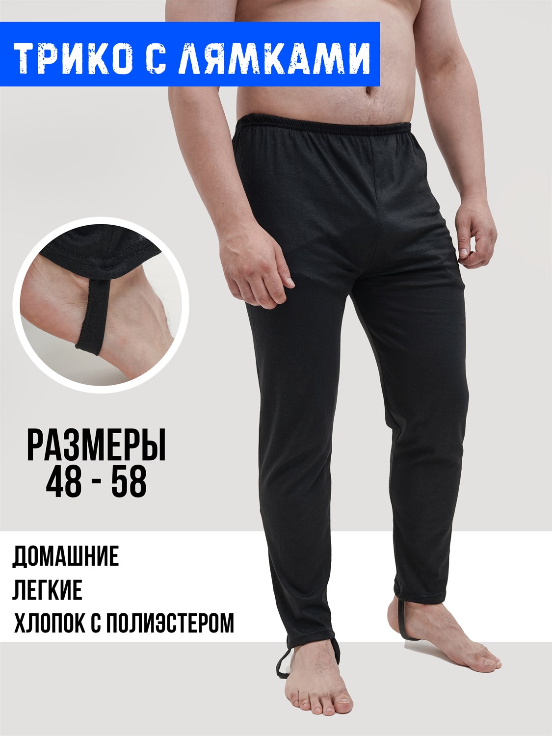 Хлопчатобумажные домашние мужские брюки со штрипкой, на лямке. Трико трикотажное из кулирки, тонкая ткань, без начёса, как советские треники из СССР. Классическая модель на резинке. Передняя и задняя части по посадке практически одинаковые. Штаны для мужчин и подростков ростом до 176 см. подходят на повседневную носку, в качестве подштанников, для дома, дачи и отдыха. Произведено в России. ВНИМАНИЕ!!! Ткань трико достаточно тонкая!!!